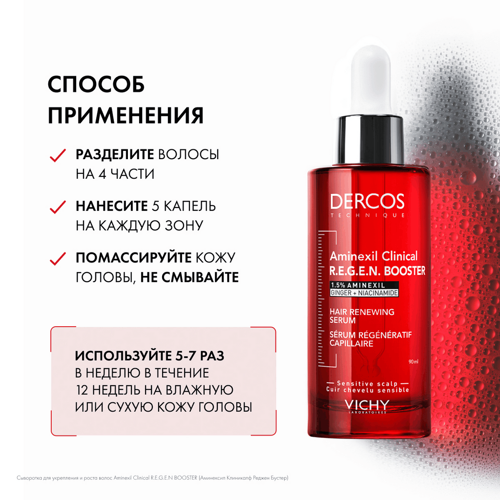 Сыворотка Vichy Dercos Aminexil Regenical уменьшает выпадение волос, улучшает их рост и усиливает клеточную активность. Заметно успокаивает и уменьшает дискомфорт кожи головы.