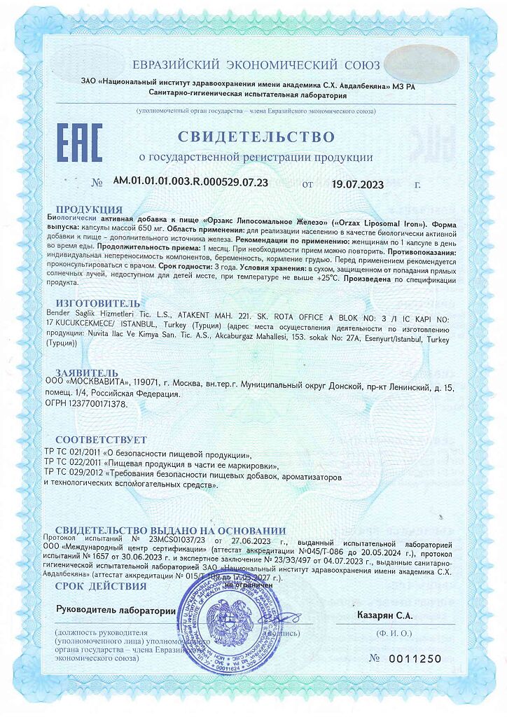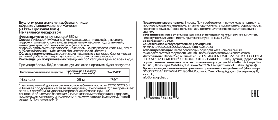 Документы Липосомальное железо/Liposomal Iron капсулы массой 650 мг 90 шт