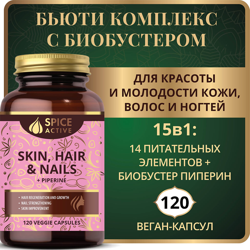 Спайс Актив/Spice Active Комплекс для здоровья кожи, волос и ногтей с пиперином / Skin, Hair & Nails + Piperine капсулы массой 647 мг 120 шт