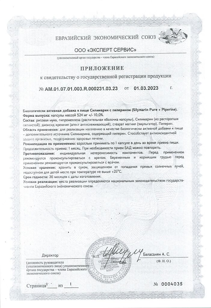Рекомендуется в качестве биологически активной добавки к пище - дополнительного источника Силимарина, содержащий пиперин. Способствует антиоксидантной защите организма, поддержанию здоровья печени.