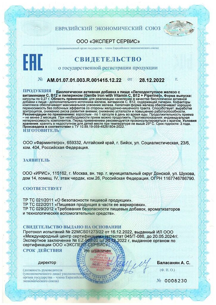 Документы Спайс Актив/Spice Active Легкодоступное железо с витаминами С, В12 и пиперином / Gentle Iron with Vitamin C, B12 + Piperine капсулы по 0,27 г 60 шт