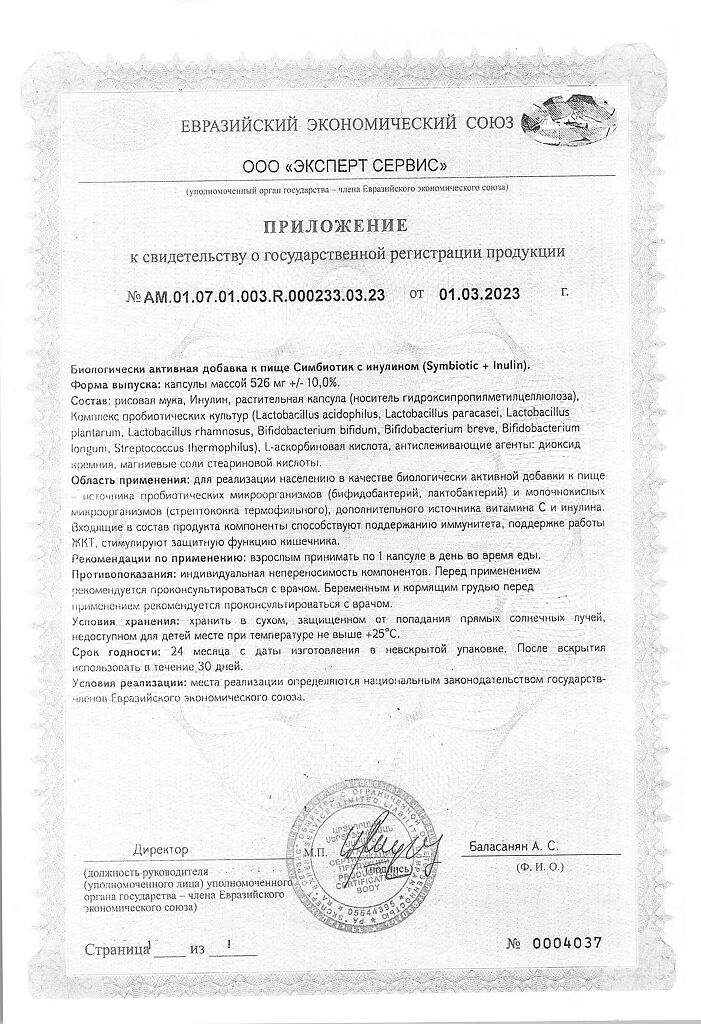 Рекомендуется в качестве биологически активной добавки к пище - источника пробиотических микроорганизмов (бифидобактерий, лактобактерий) и молочнокислых микроорганизмов (стрептококка термофильного}, дополнительного источника витамина С и инулина. Входящие в состав продукта компоненты способствуют поддержанию иммунитета, поддержке работы ЖКТ, стимулируют защитную функцию кишечника.