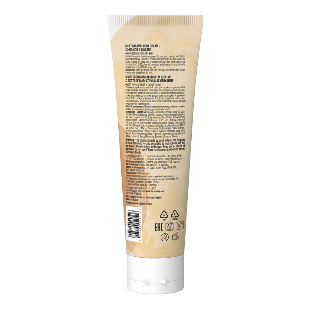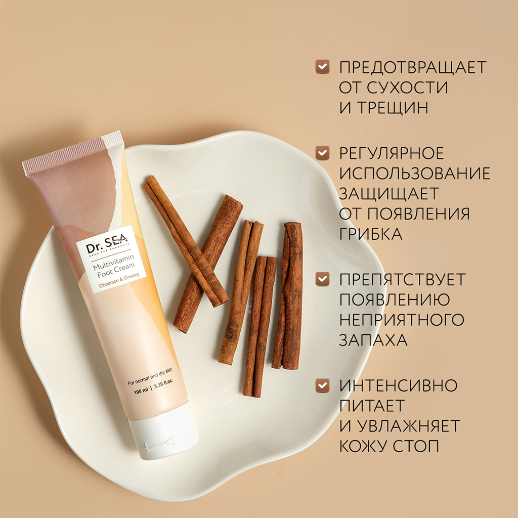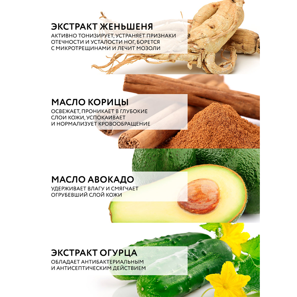 Густой крем для питания сухой и потрескавшейся кожи стоп и ногтевых пластин без чрезмерного увлажнения. Комплекс витаминов и полезных компонентов эффективно справляется с сухостью кожи ног и помогает предотвратить появление трещин и шелушения. Экстракт корицы, входящий в состав, ощутимо успокаивает кожу стоп, характеризуется антибактериальным и антисептическим действием и, при регулярном использовании защищает от появления грибка. Ценный экстракт женьшеня активно питает, активно увлажняет и тонизирует кожу ног. Рекомендуется наносить массирующими движениями на чистую кожу.