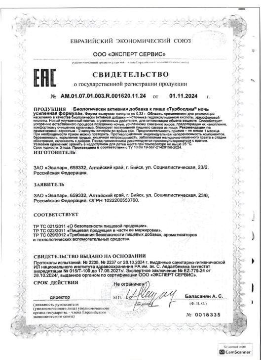 Турбослим ночь усиленная формула: взрослым – 2 капсулы вечером во время еды.