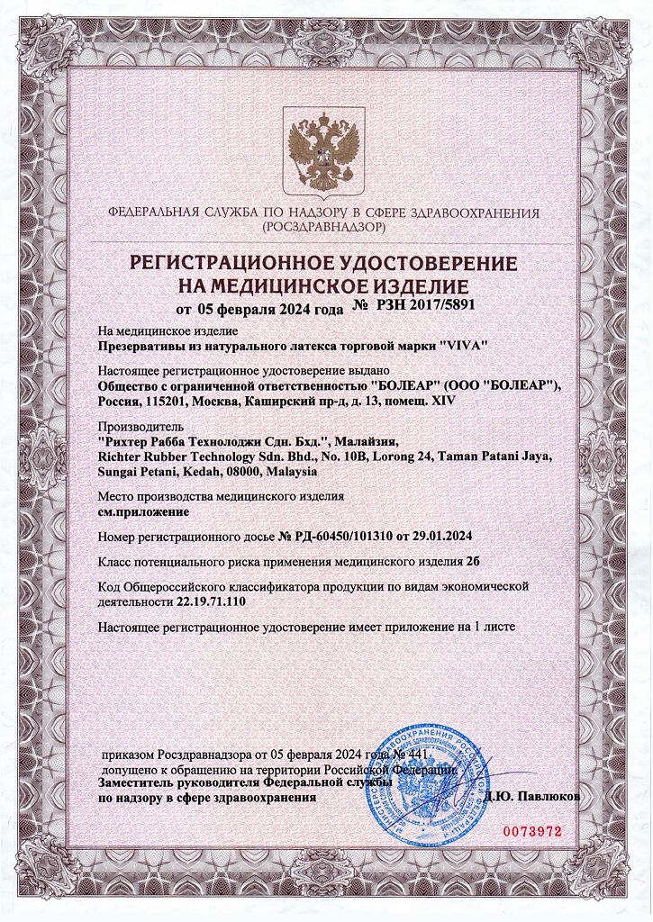 Производитель: Richter Rubber Technology Sdn. Bhd., Малайзия