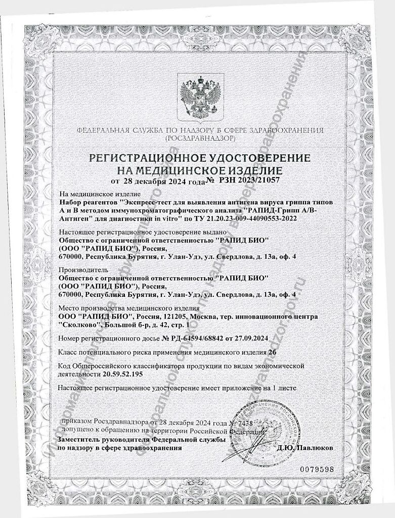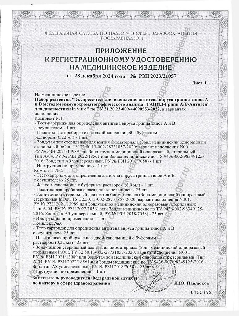Документы Экспресс-тест для выявления антигена вируса гриппа типов А/В набор реагентов РАПИД-Грипп А/В-Антиген 1 шт