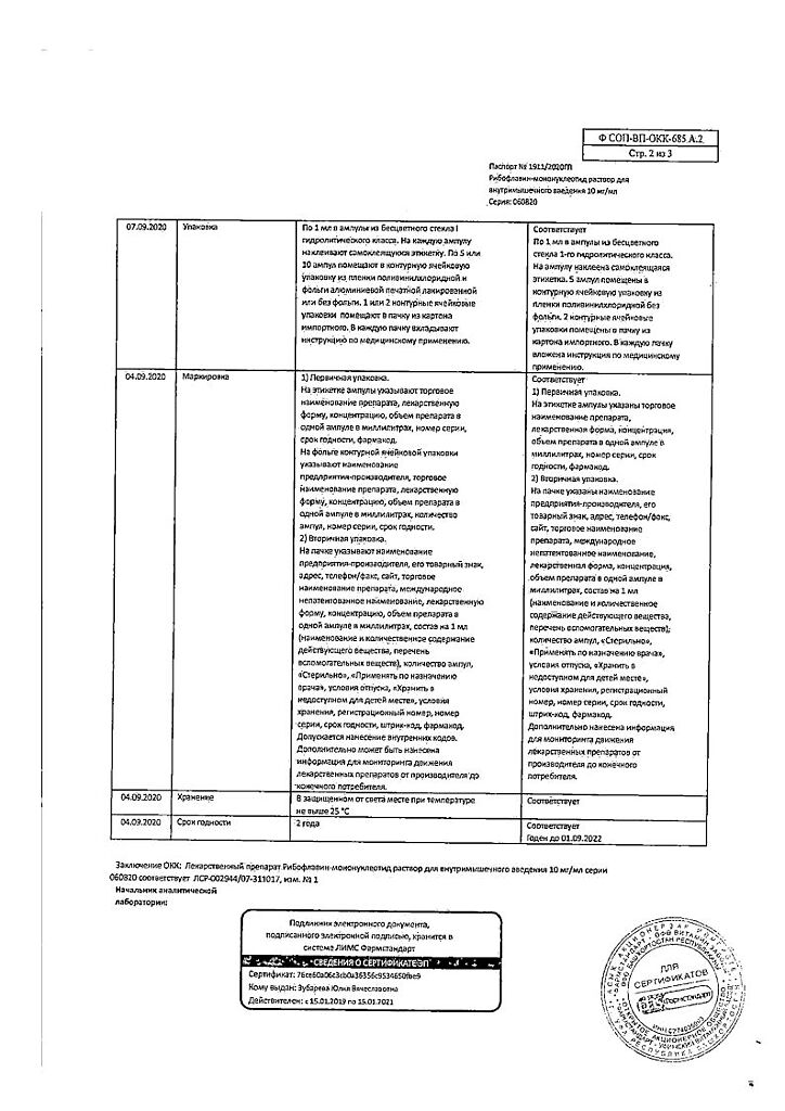 Рибофлавин-мононуклеотид раствор для в/м введ 10 мг/мл амп 10 шт