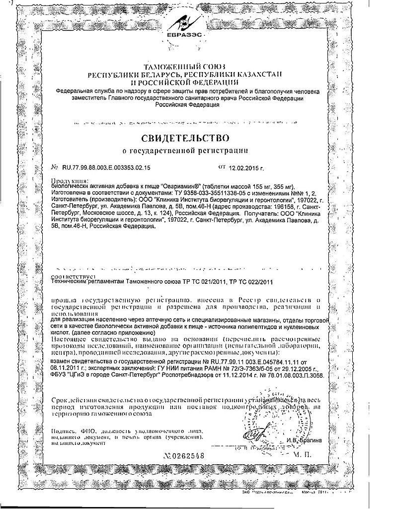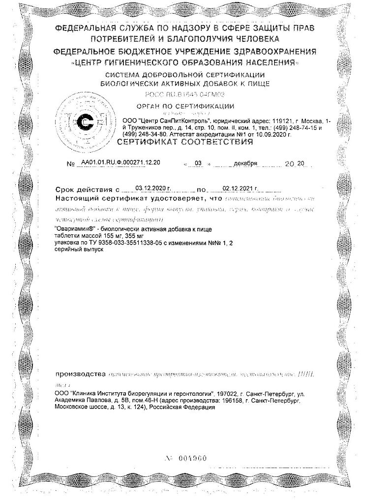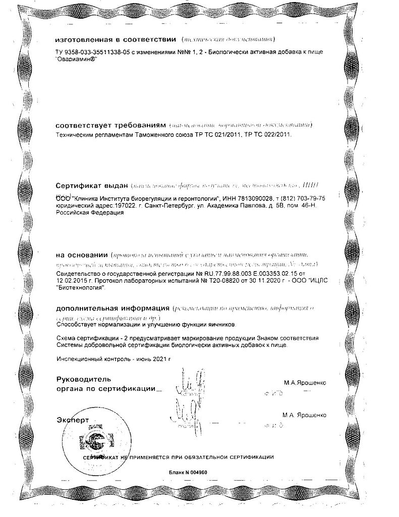 Овариамин: 109 отзывов покупателей и фармацевтов