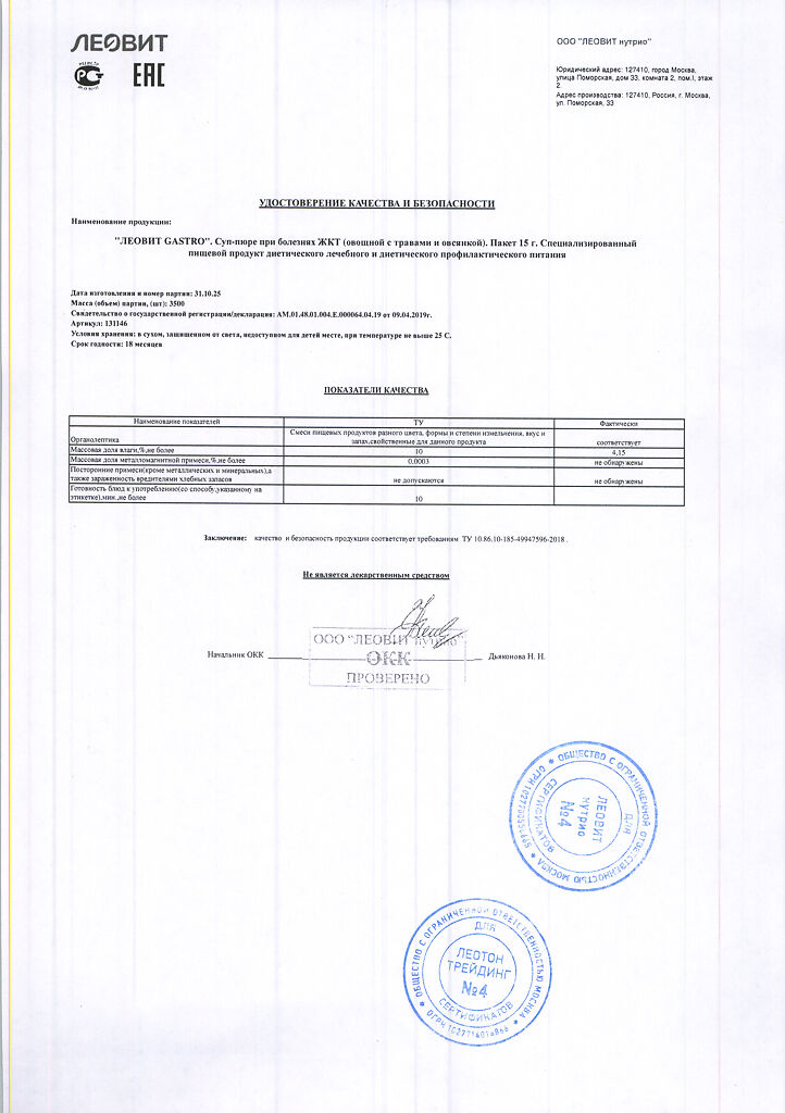 Документы Леовит Gastro Суп-пюре при болезнях ЖКТ овощной с травами и овсянкой пакет 15 г 1 шт