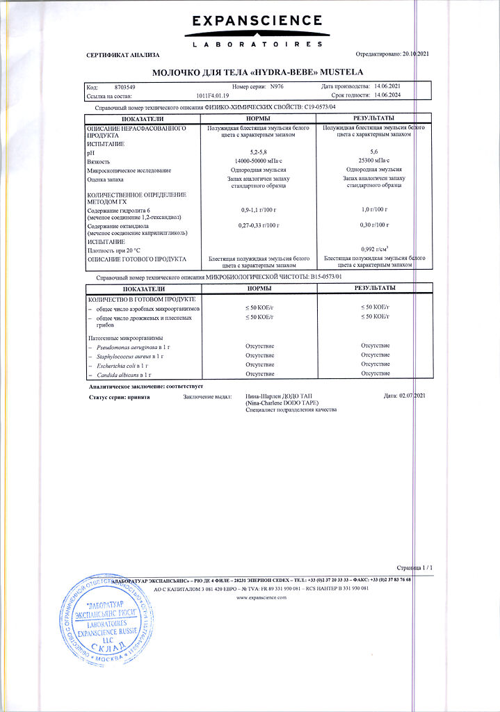 Производитель: Лаборатуар Экспансьянс Рюси, Франция