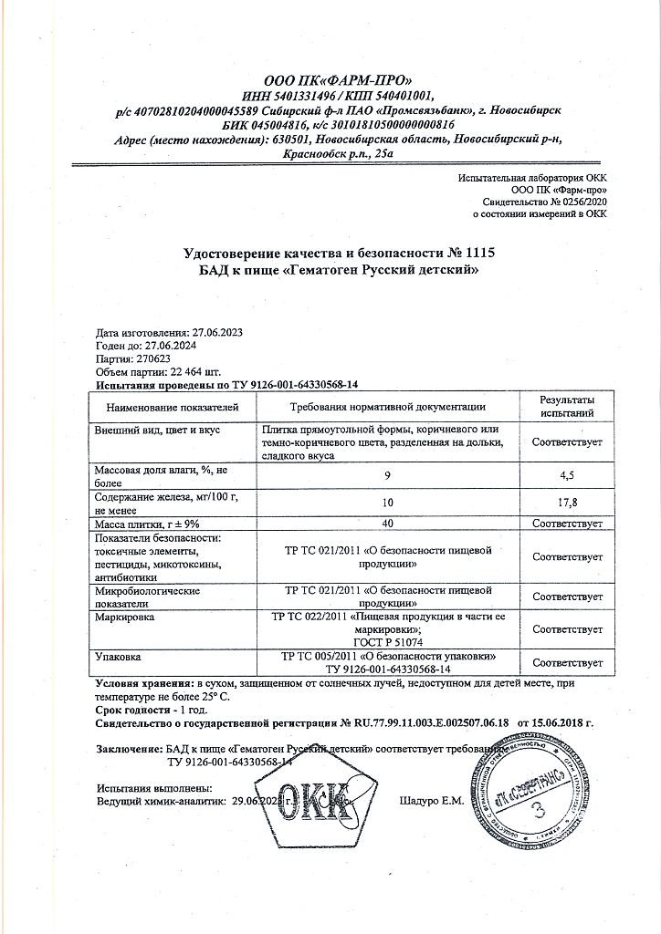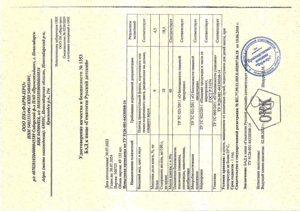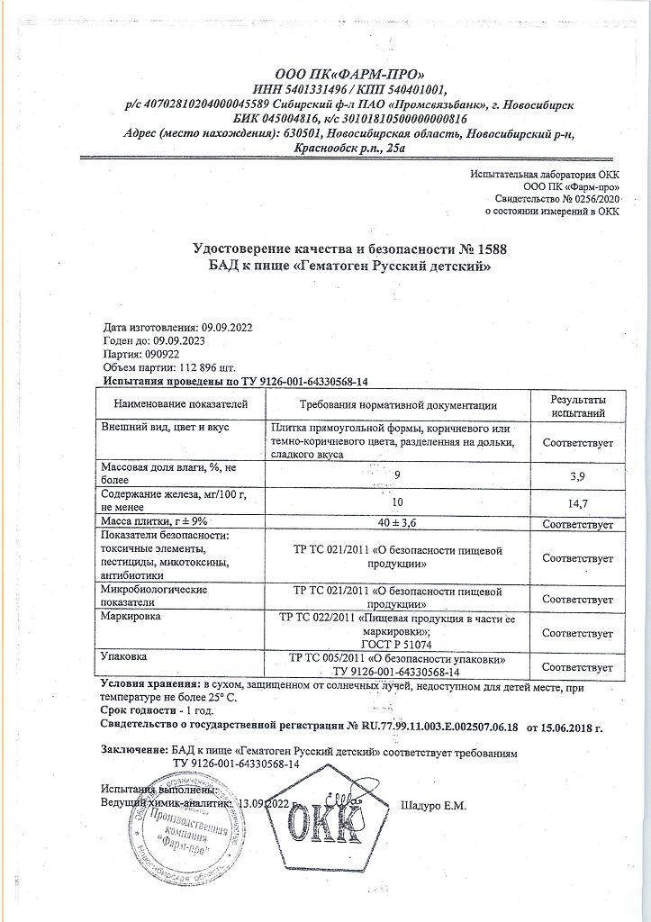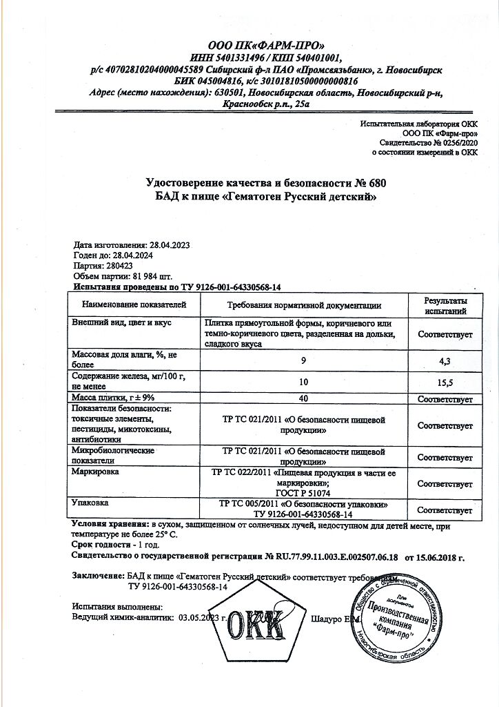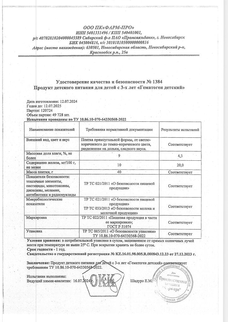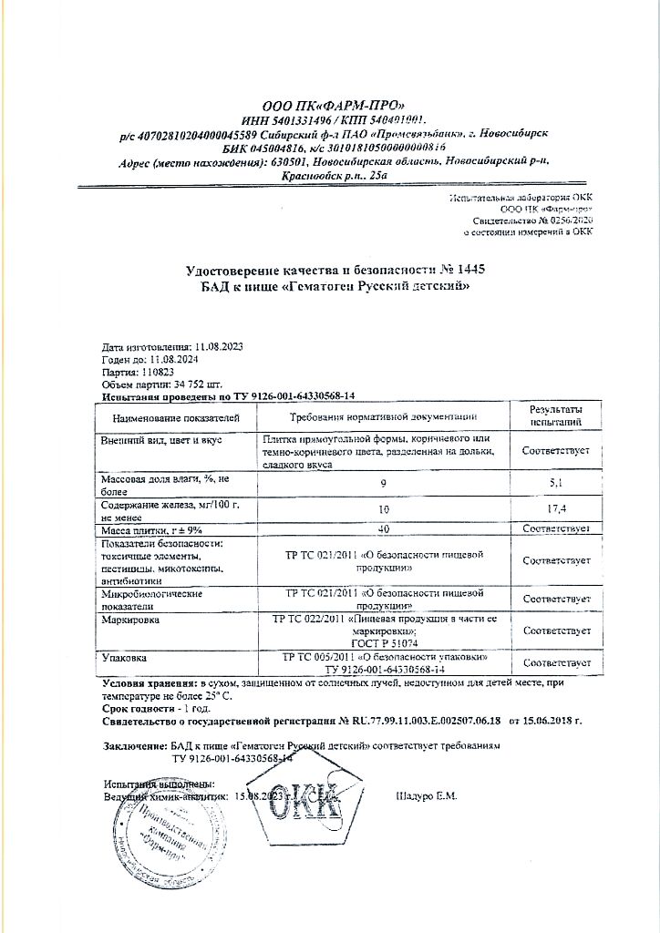 Гематоген Русский детский 40 г 1 шт: 15 отзывов покупателей и фармацевтов