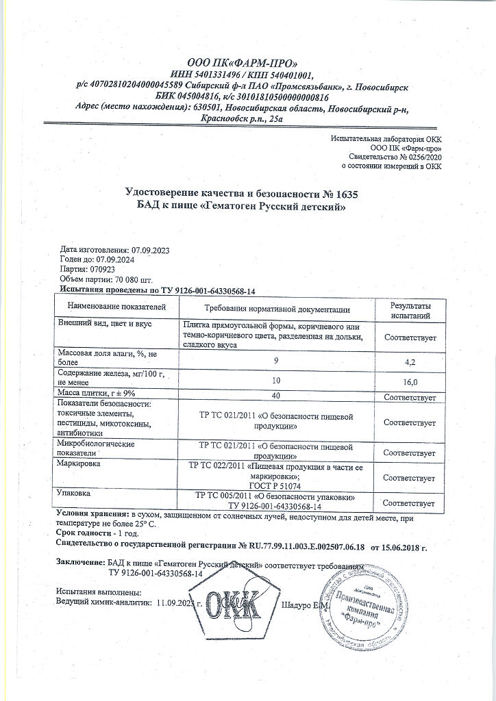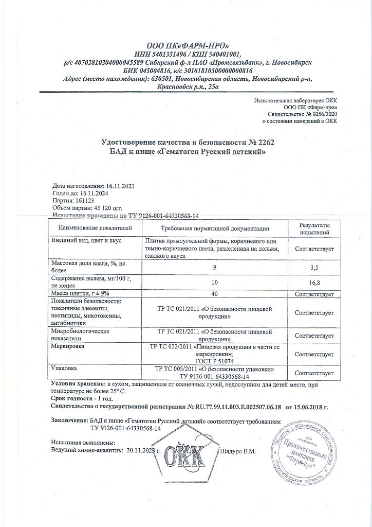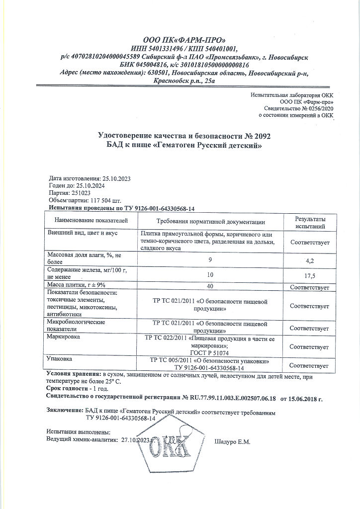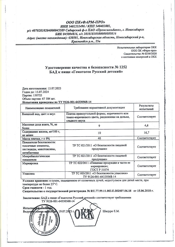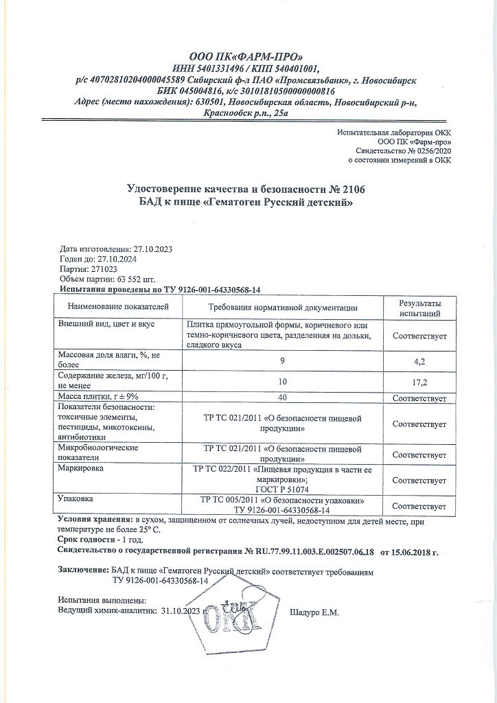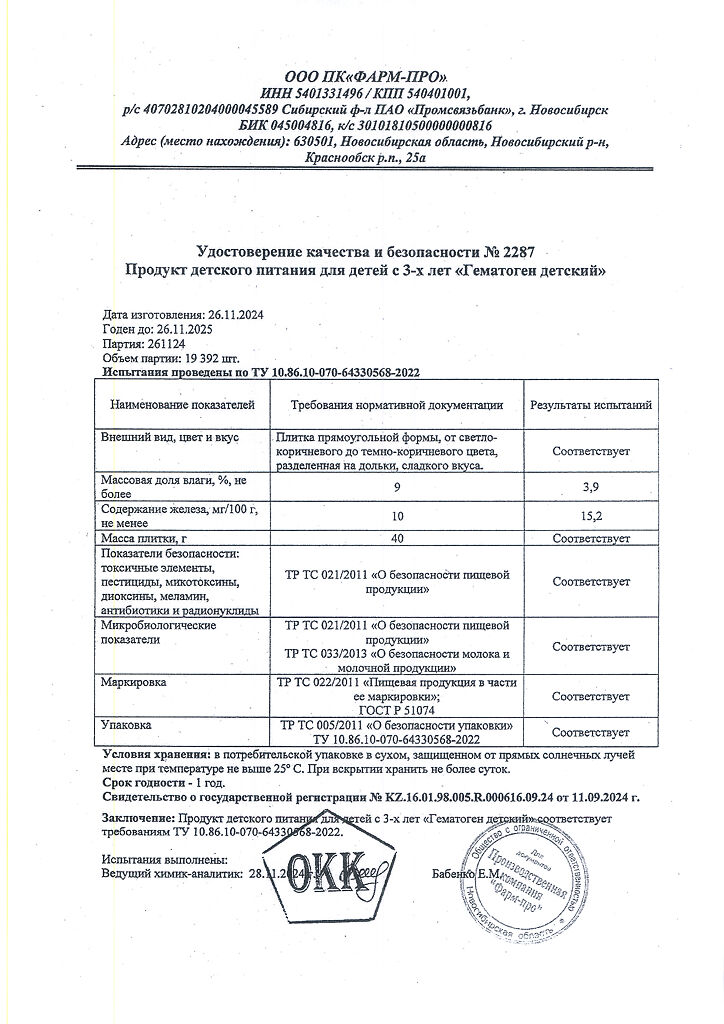 Гематоген Русский детский 40 г 1 шт: 15 отзывов покупателей и фармацевтов